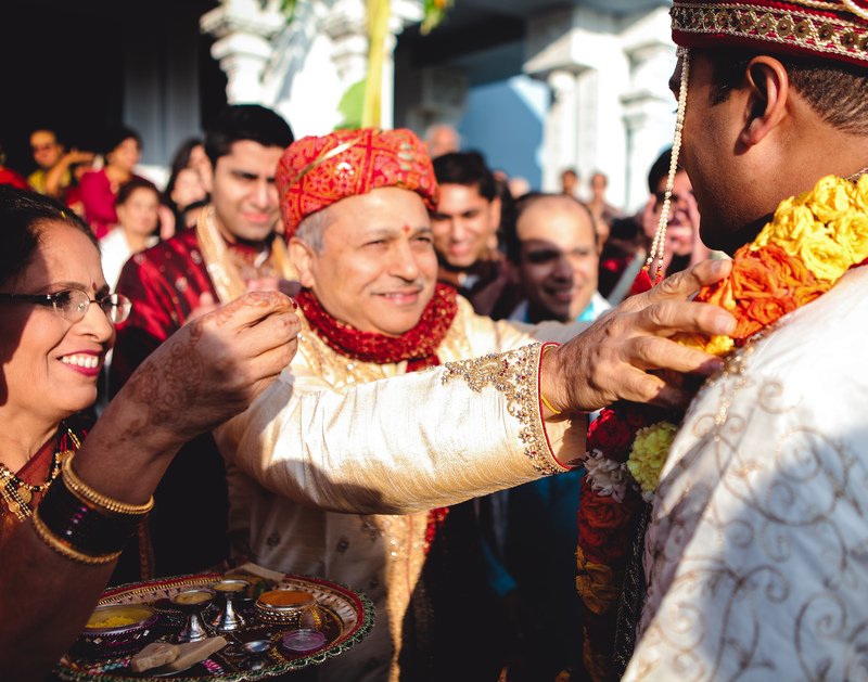 The baraat is a public procession by the groom – mounted on an elephant or a horse or in a fancy car – to the site of the wedding. The groom is escorted by friends and family, who announce their approval symbolically by dancing their way to a place where the two sets of parents meet. Accompanied by the rhythm of the dhol and, often, the contemporary beats of Bollywood music, the groom is greeted, garlanded and anointed. This short journey begins the joining of two families.