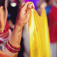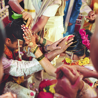The ceremonial portion of the wedding always takes place in a traditional structure erected for the occasion known as a mandap. This section of the exhibition explores five significant elements of the Hindu ceremony: Anterpat, Kanyadaan, Mangalsutra, Pheras and Saptapadi.